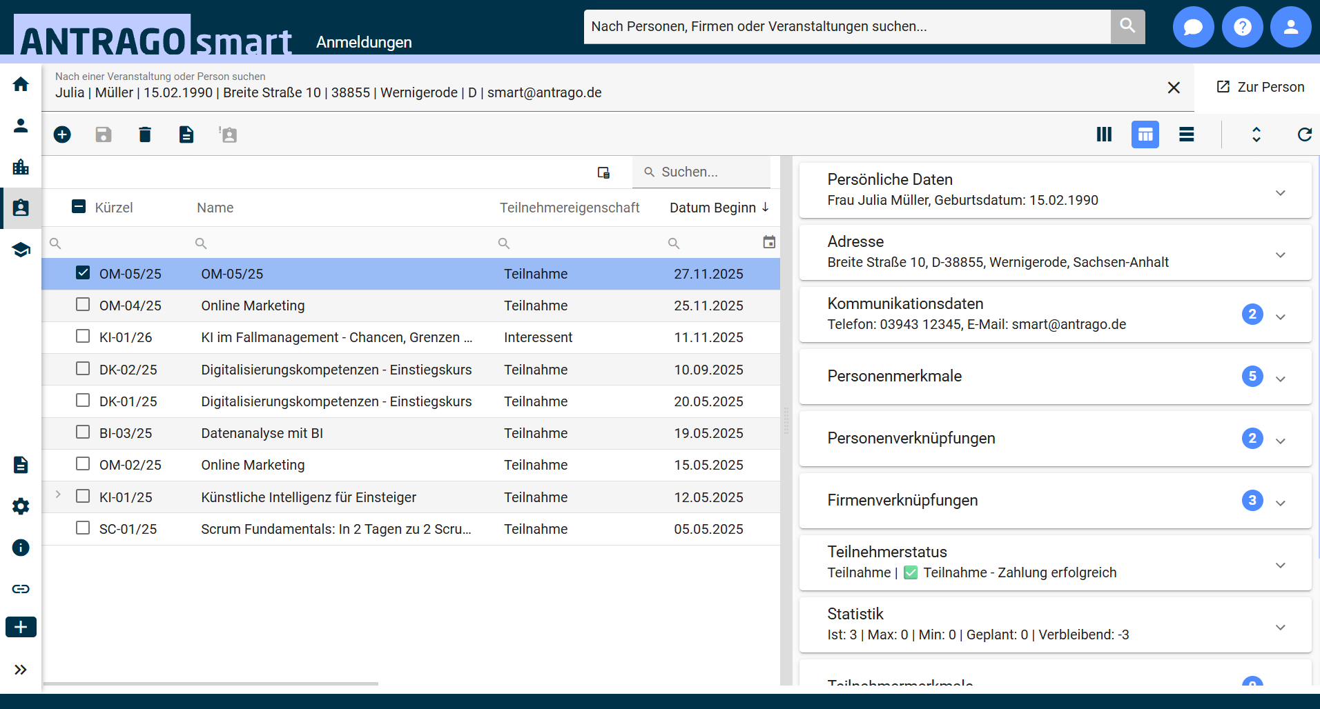 ANTRAGO smart macht Online-Seminarverwaltung und Teilnehmendenmanagement einfach und effizient.