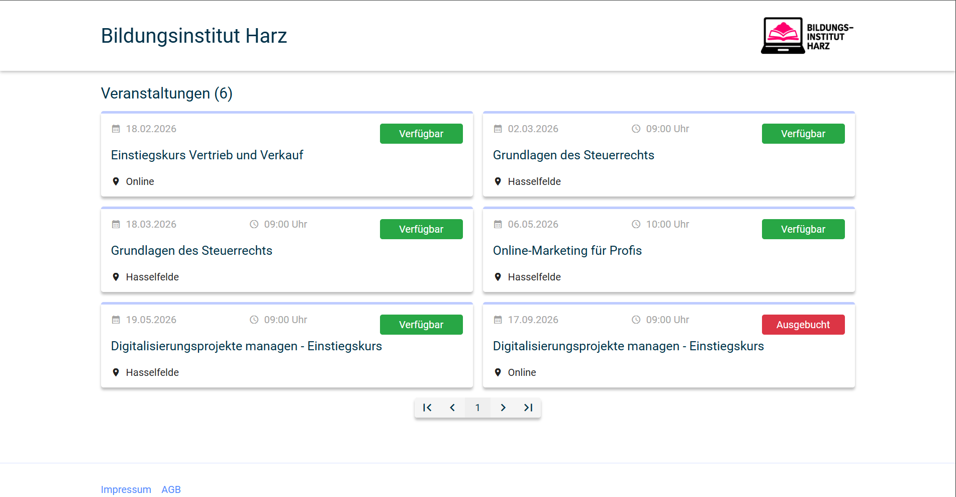Das Veranstaltungsportal zum Buchen Ihrer Seminare ist im Preis enthalten.